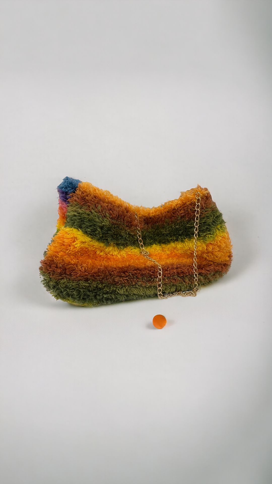 renkli iple örülmüş olup çıtçıtlı kapama şekli tamemı el örgüsü dikdörtgen şekilde orta boy geniş iç hazneli çanta
