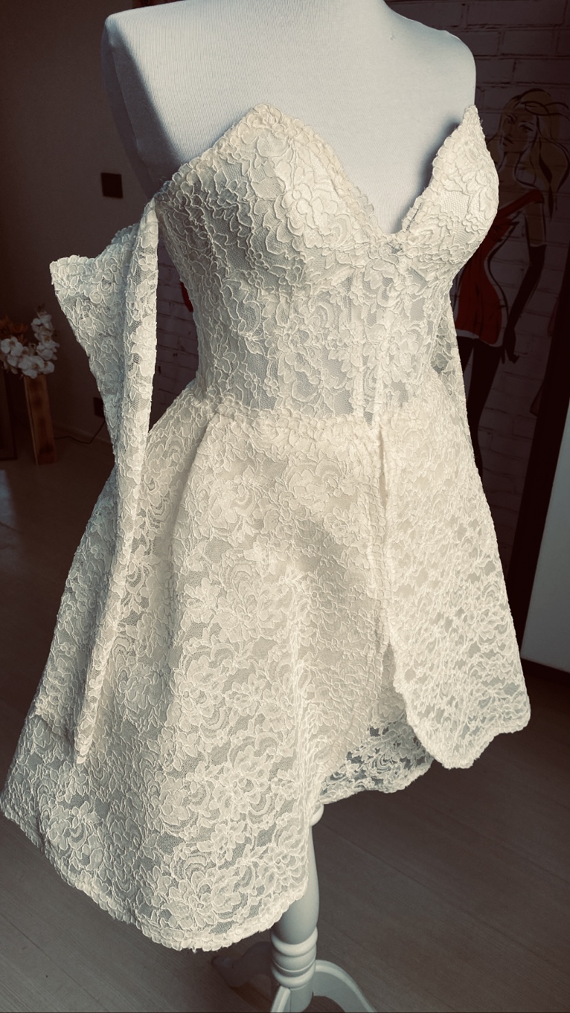 Kırık beyaz kolları geçirilmeli kol altından dikişli grenli kabarık dantel abiye. Ürün standart bedendir 34-36-38 bedenlere uyumludur. Arkası bağcıklı ip ile bağlamalıdır.